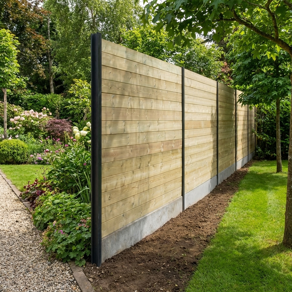 Lame de bois en Pin Sylvestre pour clôture bois par emboîtement. Ces lames intermédiaires sont labellisées PECF prouvant la gestion responsable du bois. Ces lames de bois claires sont à superposer entre vos poteaux pour réaliser le montage de votre clôture.