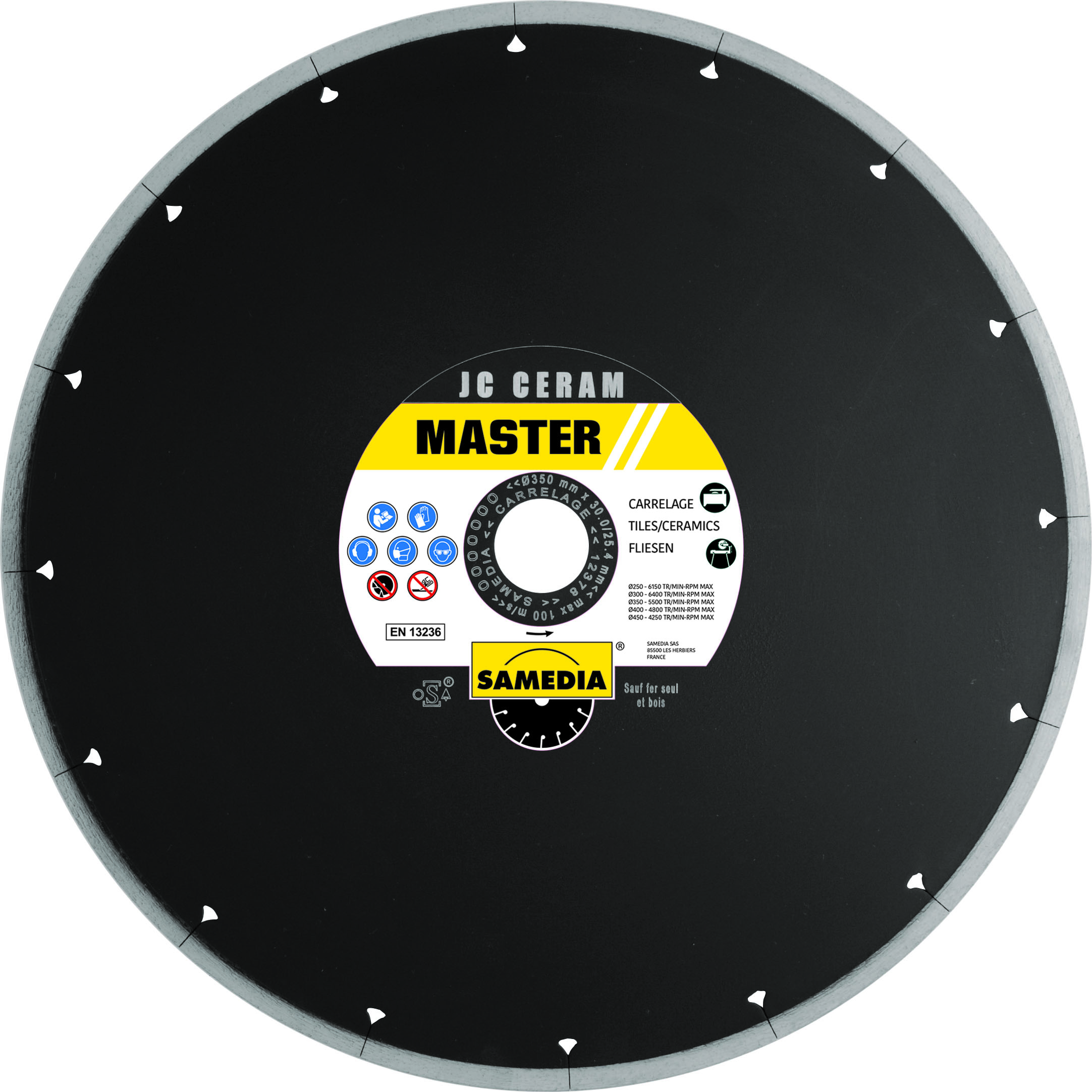 Optimisez vos chantiers avec le Master JC Ceram 125 mm, le disque diamant haute performance conçu pour le grès cérame, le carrelage et les matériaux très durs. Sa technologie de segments jointifs ultra-fins (1,2 mm) assure une coupe nette, rapide et sans épaufrure. Utilisable à sec ou à eau, c'est l'outil indispensable des carreleurs pour des finitions professionnelles impeccables.