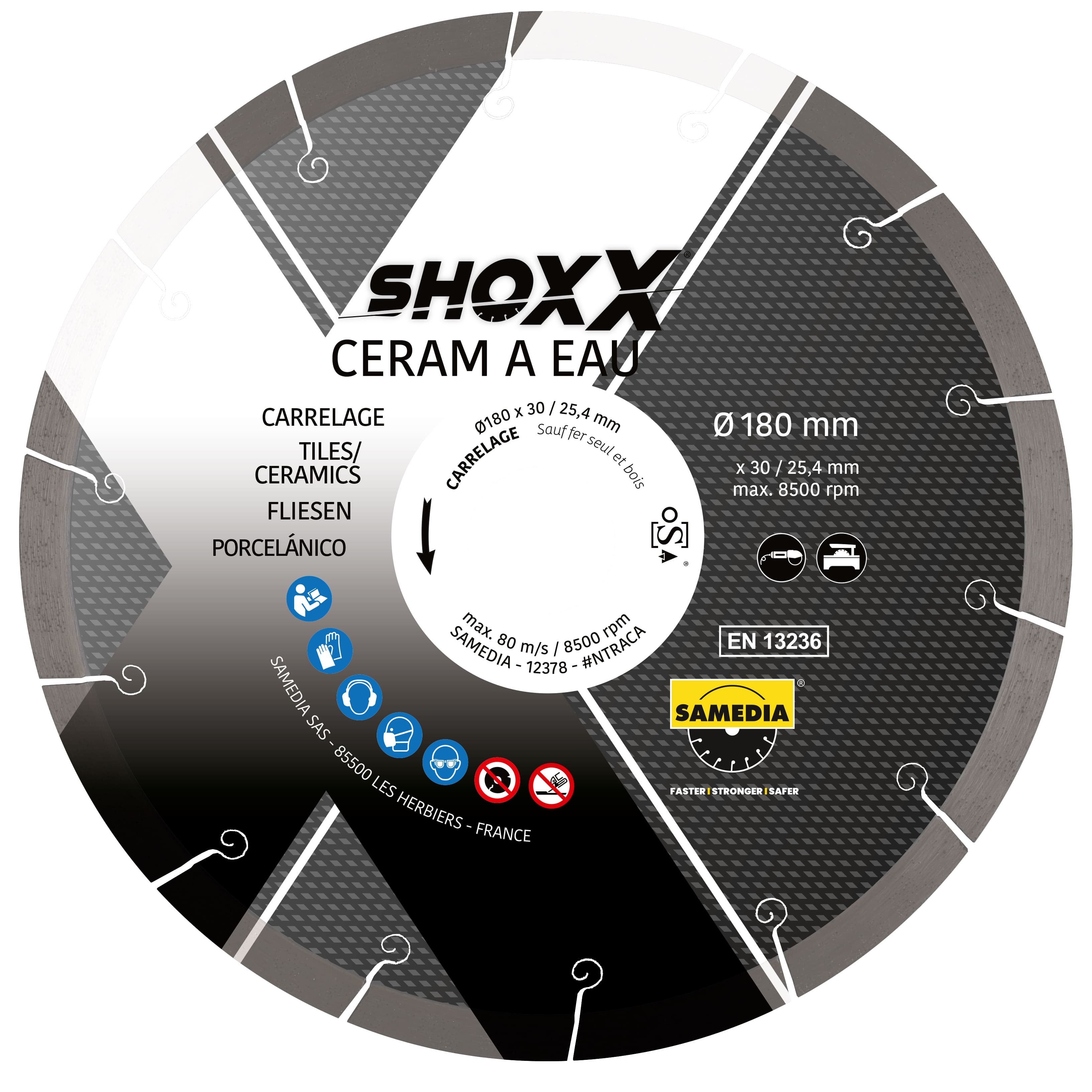 Le SAMEDIA Shoxx Ceram 180 mm est le disque diamant à eau de référence pour les finitions d'exception. Doté de la technologie brevetée SHOXX à diamants alignés, il assure une coupe d'une netteté absolue et sans épaufrure sur les grès cérames les plus denses. Conçu pour un haut rendement, ce disque garantit aux carreleurs et paysagistes une vitesse de coupe constante et une longévité inégalée.