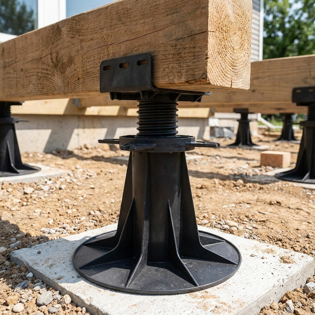 Le plot lambourde Vérindal+ B150 est un support PVC réglable de 160 à 230 mm. Ce support PVC qui est simplement posé au sol et lesté par le poids des lambourdes, sert de fondation à votre terrasse en bois sur plots.