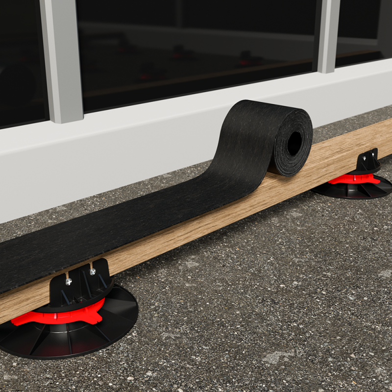 Adhésive, la bande d'étanchéité protège les lambourdes de l'humidité et du ruissellement des eaux de pluie. Ainsi, la durée de vie de votre terrasse est prolongée.