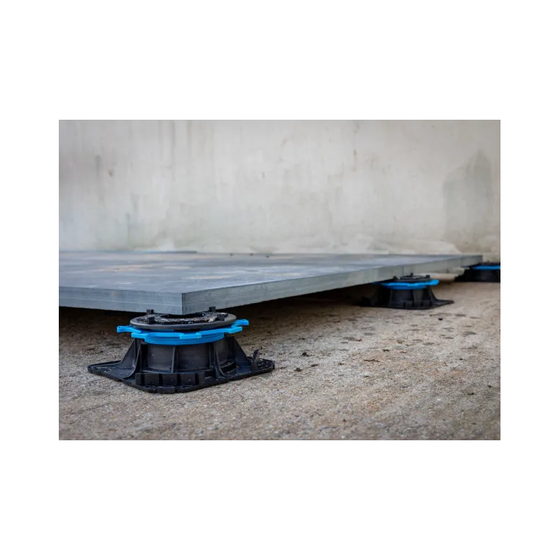 • Double système de réglage pour s'assurer de la stabilité de la terrasse. Soit manuellement grâce à l'écrou, soit en utilisant la clé spécifique une fois les dalles installées. La clé s'insère entre le revêtement et augmente la hauteur de quelques millimètres pour des finitions parfaites ;